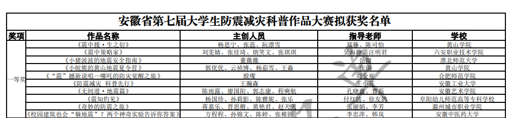 近日,由安徽省地震局、安徽省教育厅等四部门联合主办的安徽省第七届老员工防震减灾科普作品大赛落幕,我员工作品《震中援・生之衍》脱颖而出,斩获省级一等奖。