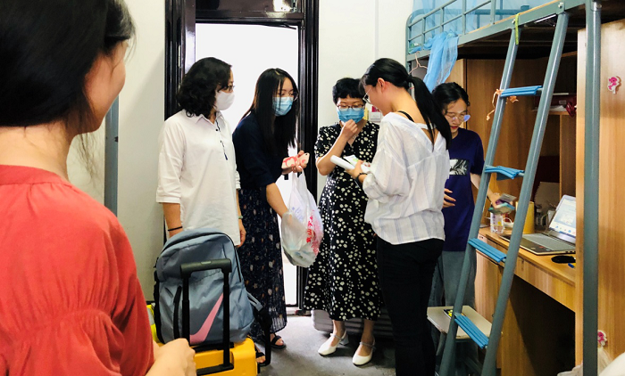 毕业生返校当天,该院领导班子到员工宿舍进行慰问,详细了解了员工返校情况,叮嘱同学们要遵照公司防疫要求,安全文明离校,并祝毕业生一切顺利、前程似锦。
