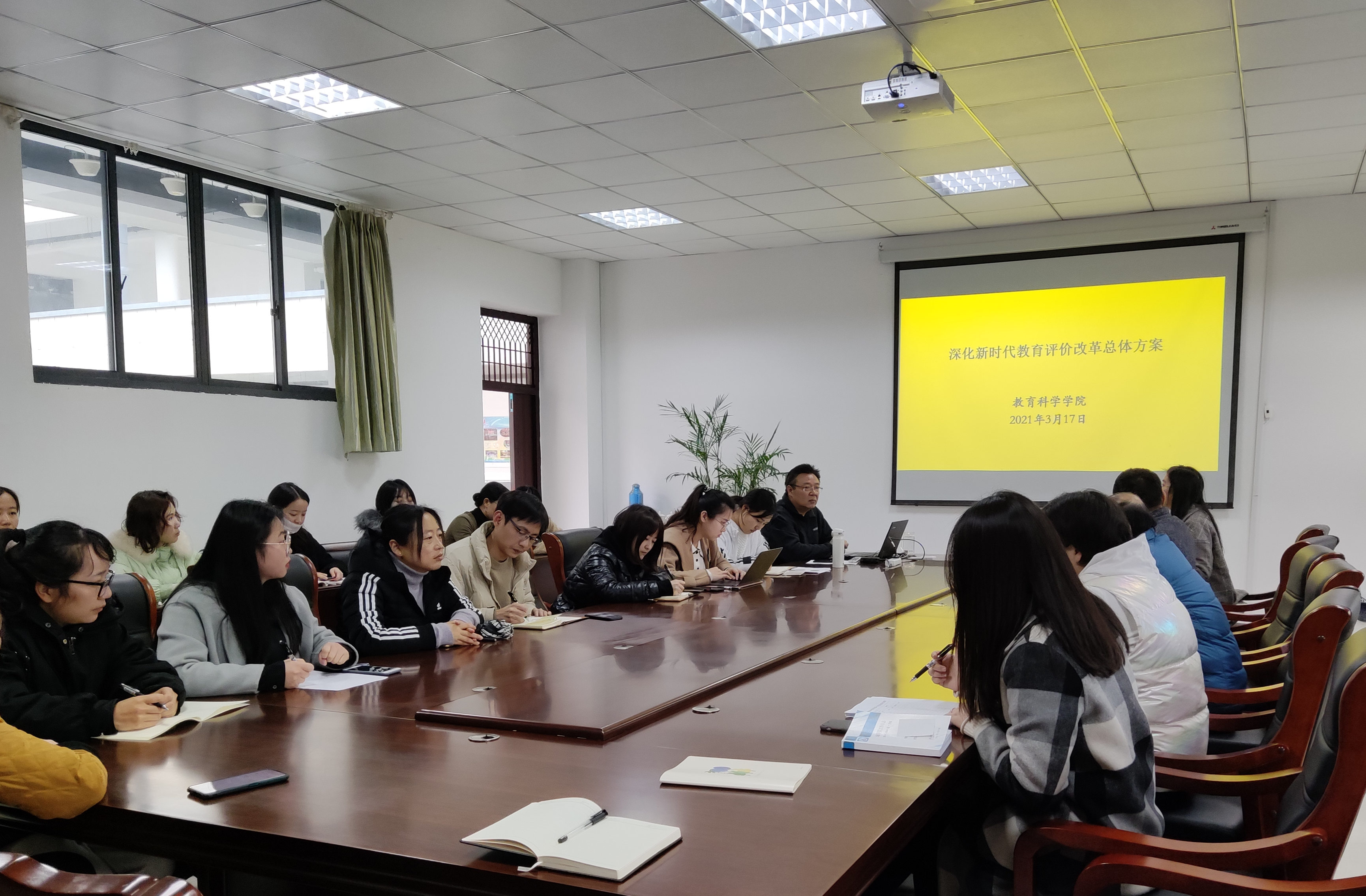 2021年3月17日下午,教科院组织全体教师学习《深化新时代教育评价改革总体方案》。