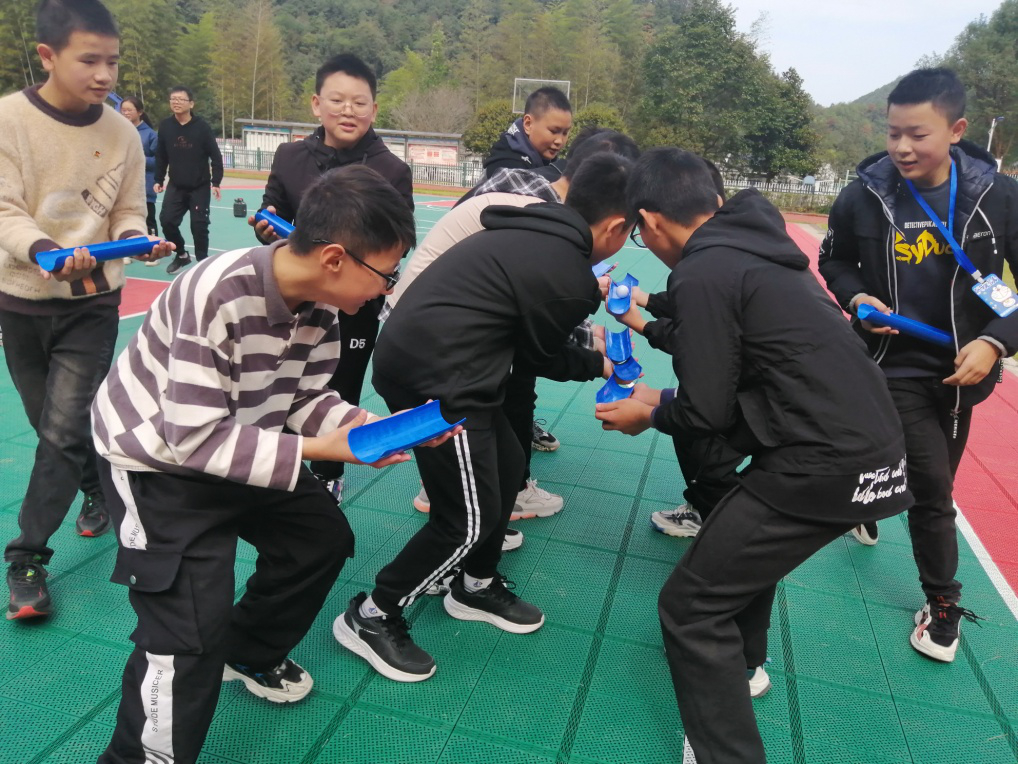下午,太阳成集团122ccvip19级应用心理学邓强等6名员工带领森村中心公司七年级两个班共91名员工开展了“我与班级共成长”心理素质拓展活动。活动在热身游戏“听歌传花”中拉开序幕,依次开展了“红包组队”“管道传球”“细解手链”“吸管传钥匙”等多个项目,在活动循序渐进地引导员工交流合作,同学们通过小组参与、班集体合作、齐心谋划、合作鼓励,圆满完成了全部拓展训练项目。此次拓展活动帮助七年级新生们体验到了团队合作的意义,进一步增强了七年级两个班的凝聚力,帮助员工更快更好地融入新的集体。