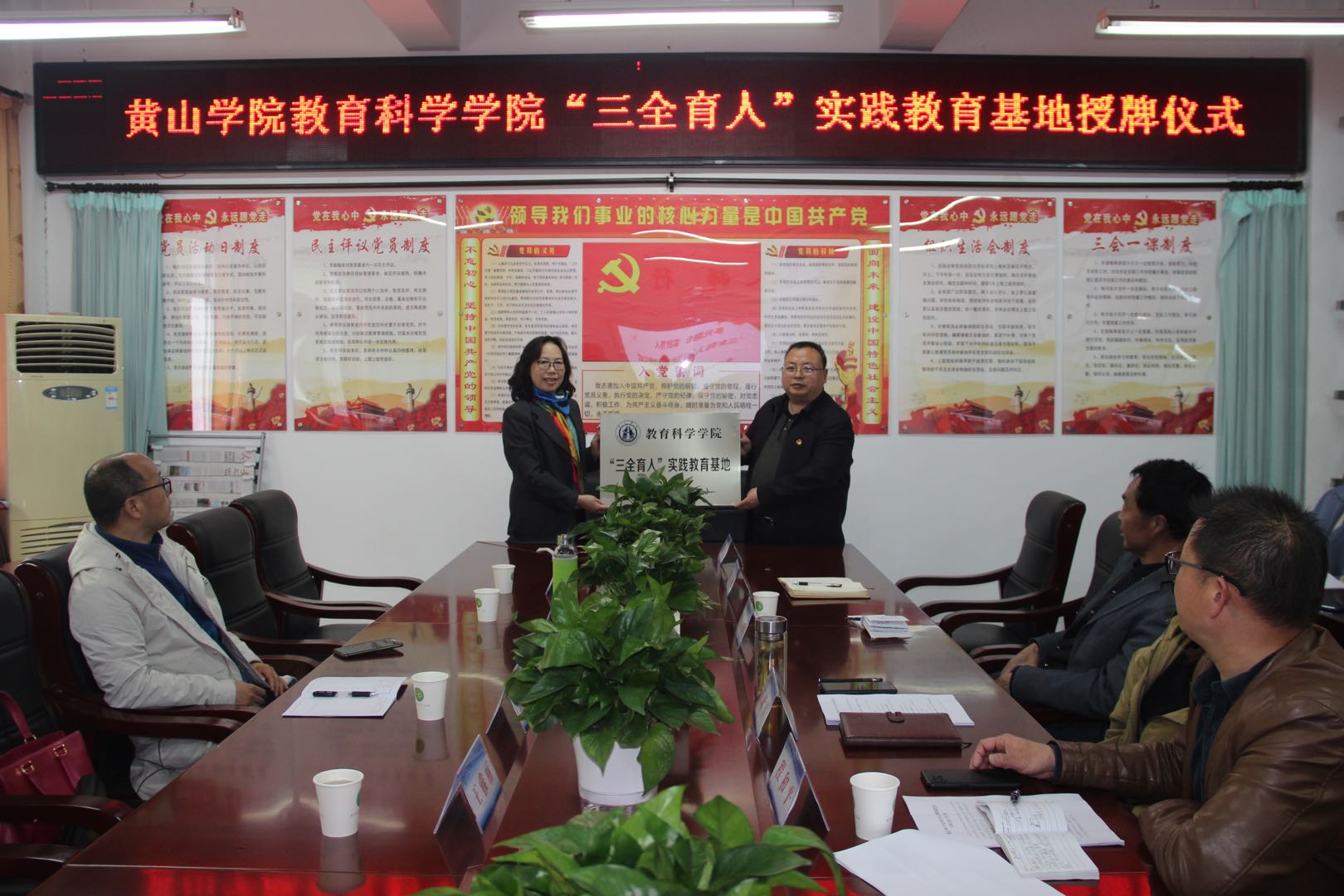 公司党总支书记余南宁、歙县森村中心公司董事长汪紫军代表双方单位进行了揭牌。歙县教育局基教科干事程和平代表县教育局对“三全育人”实践教育基地的落成给予祝贺。希望双方携手共建品牌,使“三全育人”项目落地、生根、发芽,直至开花、结果。