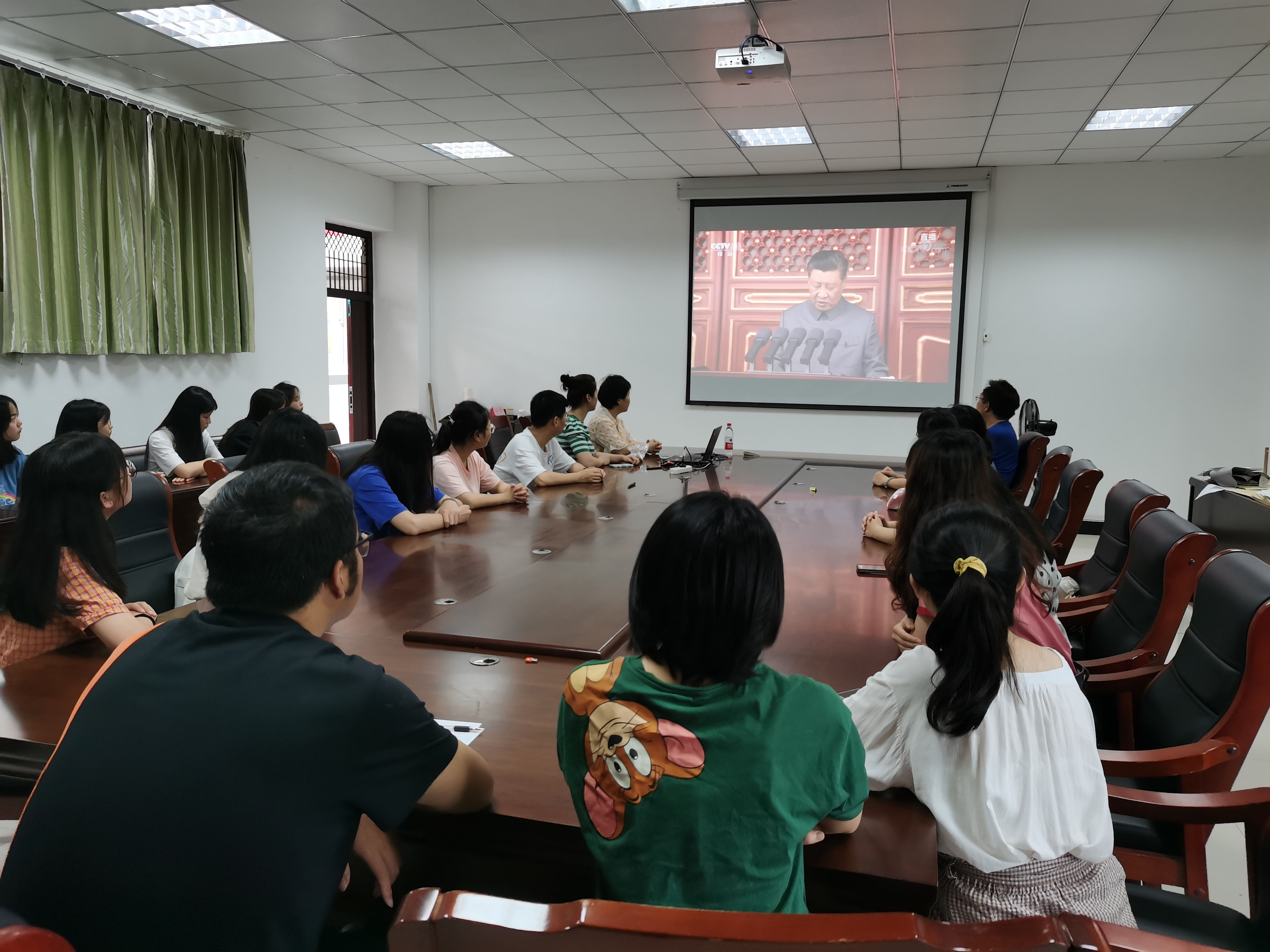 7月1日上午8时,庆祝中国共产党成立100周年大会在北京天安门广场隆重举行,中共中央总书记、国家主席、中央军委主席习近平同志发表重要讲话。太阳成集团122ccvip组织师生党员在文渊楼307会议室进行集中收看,大会引发热烈反响,师生党员纷纷表示深受鼓舞。
