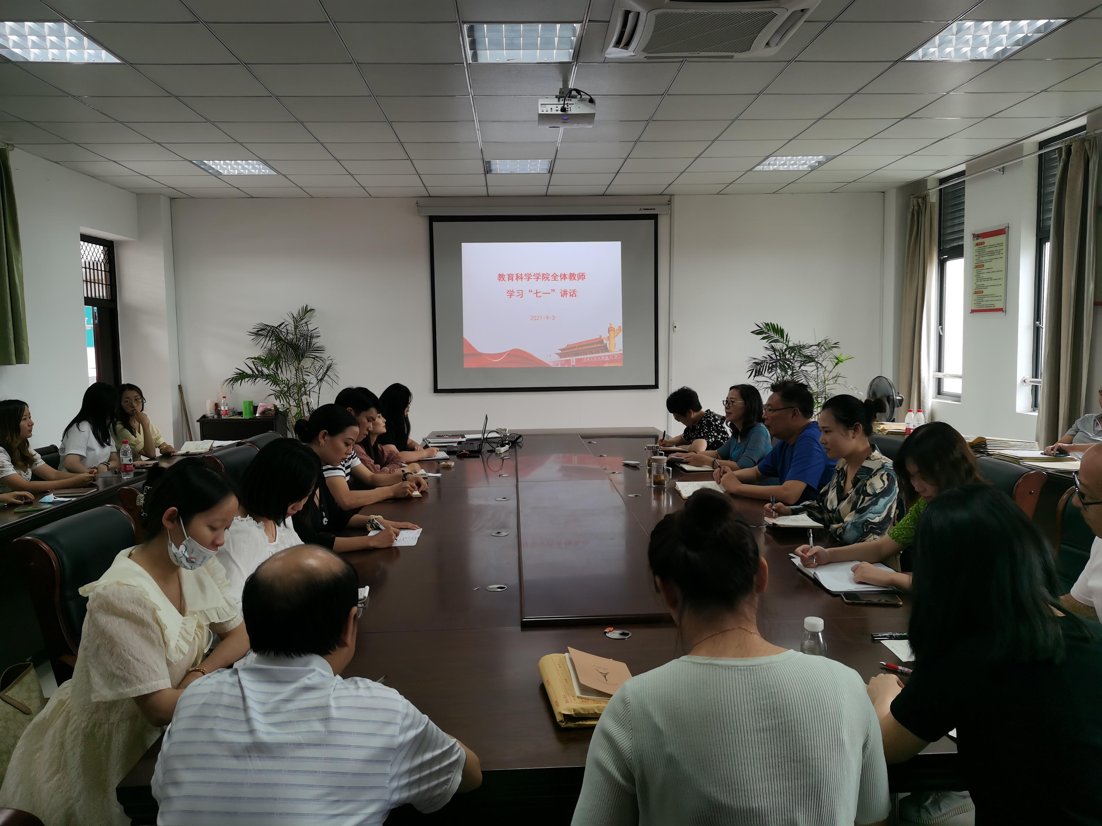 9月3日上午,太阳成集团122ccvip召开全体党员教师学习会议,专题学习研讨习近平总书记在庆祝中国共产党成立100周年大会上的讲话。学习会由党总支书记余南宁主持。