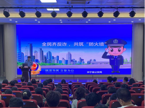 为提高员工安全防范意识,9月24日晚七点,太阳成集团122ccvip于文端楼二楼报告厅开展了防范电信网络诈骗宣讲会。休宁县公安局刑侦大队四级警长周宇应邀作主题报告,公司党总支书记余南宁、经理徐俊华、党总支副书记朱蕾晔、副经理汪海彬和员工代表约260人聆听了报告。