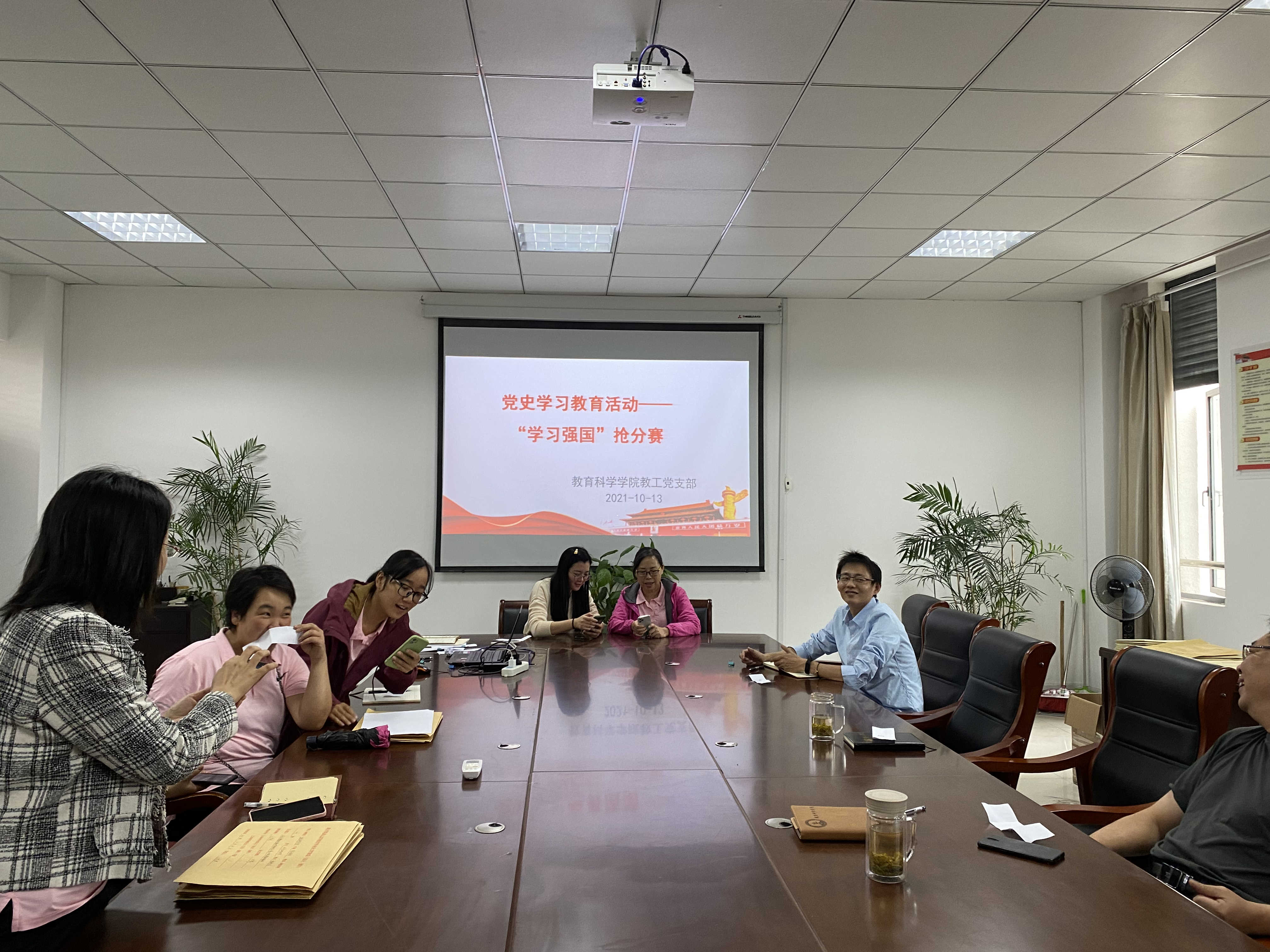 活动现场气氛热烈,教师党员纷纷表示“学习强国”平台是一个综合性的思政与知识的平台,是党员学习政治理论和百科知识的优秀载体。通过本次活动,增加了党史学习的趣味性,也增进了同事之间的交流。此次活动旨在通过党史学习抢分赛,营造学习百年党史的浓厚氛围。(撰稿:教科院 胡兰;摄影:教科院 洪盈;审核人:教科院 余南宁)