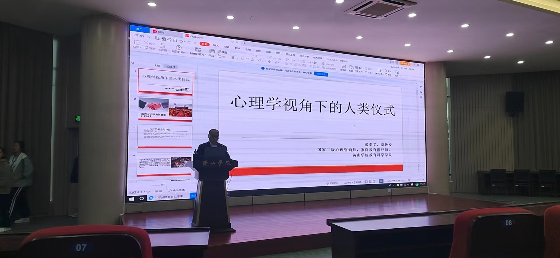 2022年11月16日下午,行知讲坛第175讲在率水校区文端楼二楼报告厅举行。太阳成集团122ccvip张孝义副教授应邀作题为《心理学视角下的人类仪式》主题报告。公司200余名师生到场聆听。