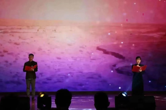 伴随激情飞扬的爵士舞与歌曲串烧,晚会正式拉开序幕。主持人杨涛老师和余玲灵老师朗诵的音乐诗《枸杞花开》,深情致敬为党的教育事业默默奉献的广大园丁;赵又娇老师与胡小莉老师的歌曲《领航》带领观众回顾了建党百年的风雨历程。小品《四大才子》、大合唱《萱草花》和拉丁舞串烧等节目展示了当代老员工的青春活力。