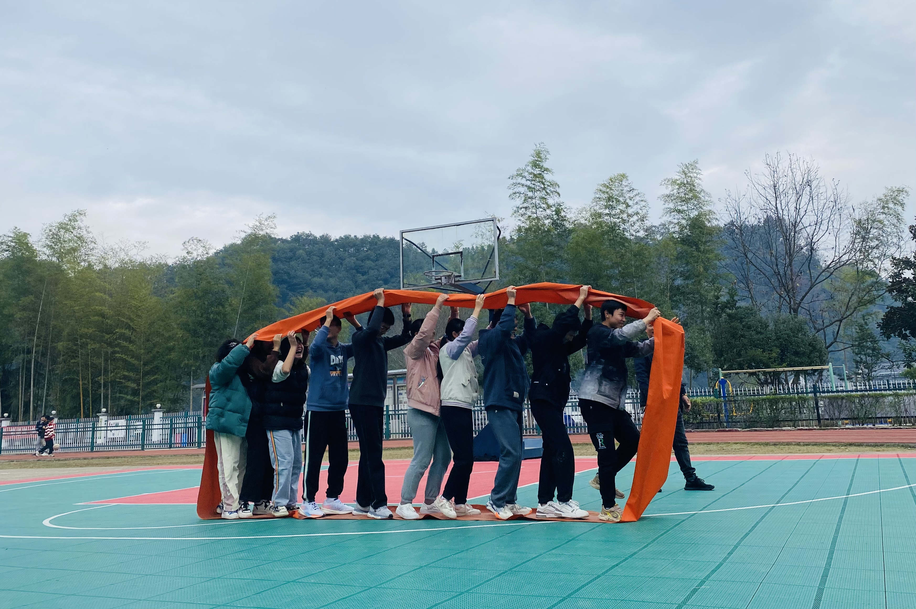 本次心理教育的内容以心理健康游园全的形式展开,活动共有蒙眼互打、团队过河、滚铁环接力、绑腿并进、急速六十秒、车轮滚滚、同手同脚、雷区取水、滚球接力、知识问答等十项团队活动,100多名同学分十个小组,循环交叉参与十项活动,以培养小组成员协作能力和拼搏精神。