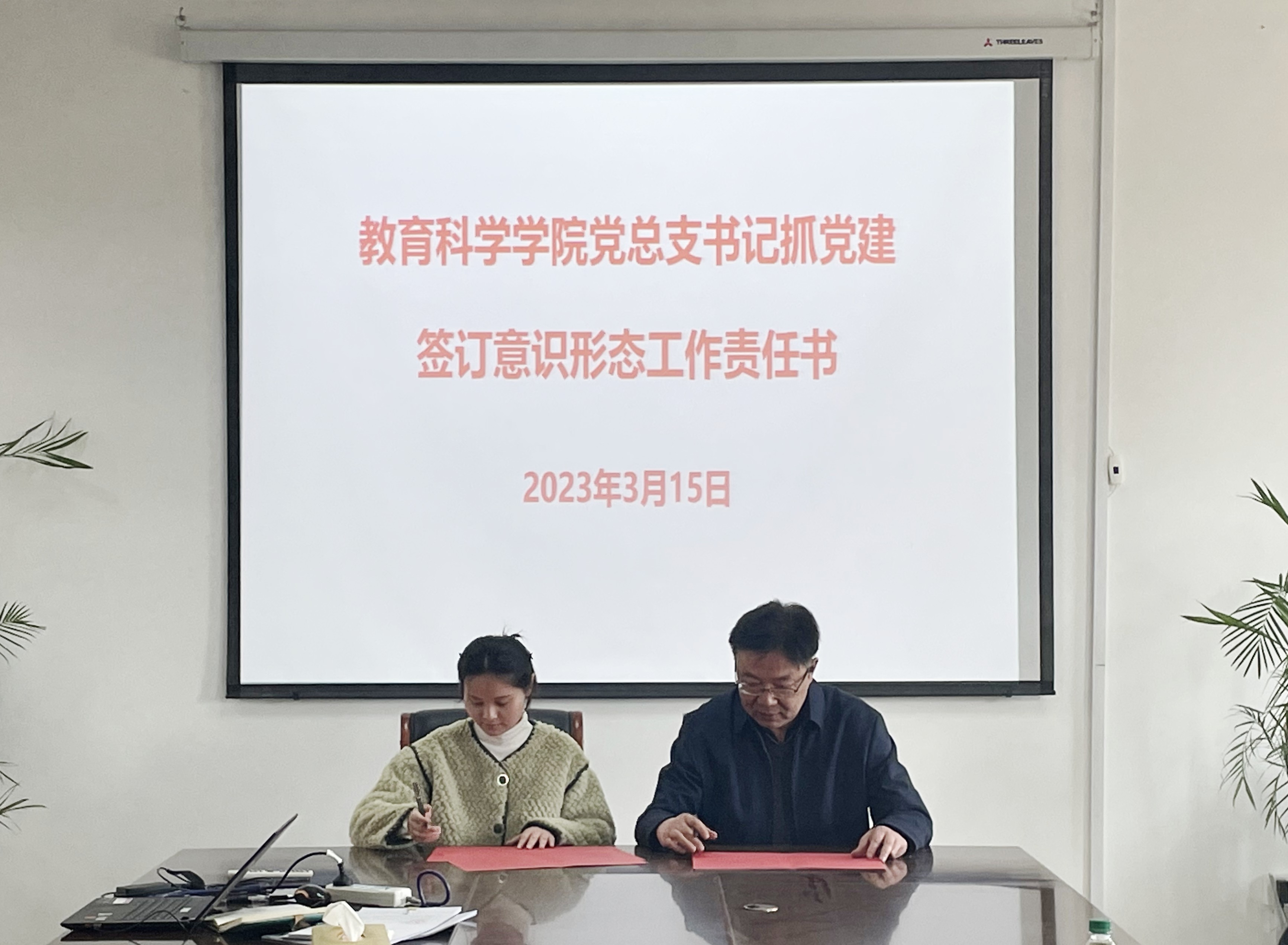 徐俊华传达了公司2023年全面从严治党工作会议精神,带领大家系统学习了习近平总书记关于意识形态工作的系列重要讲话和《太阳成集团122ccvip意识形态工作责任书》的内容,并分别与党支部书记、教研室主任签订了意识形态工作责任书。