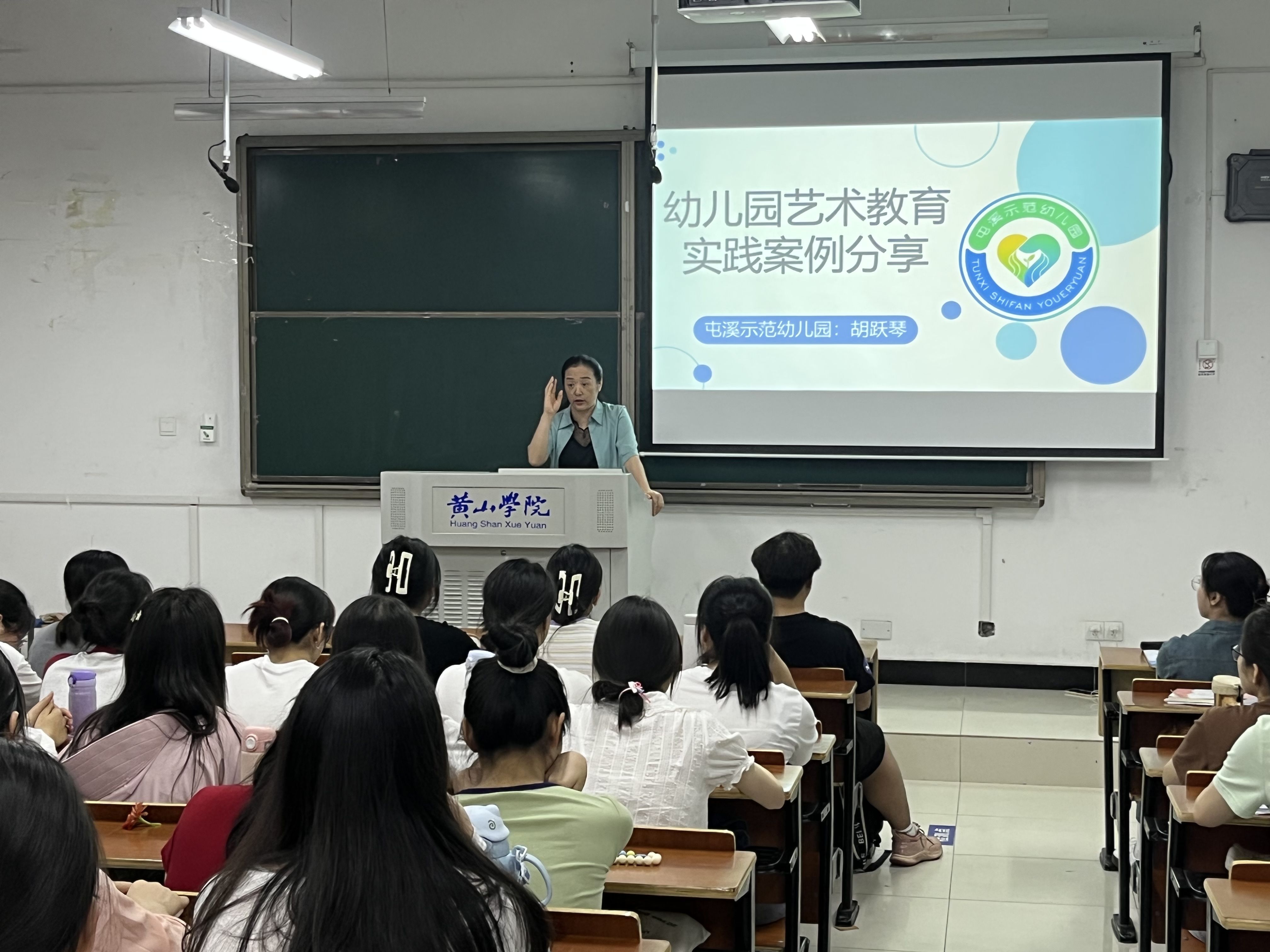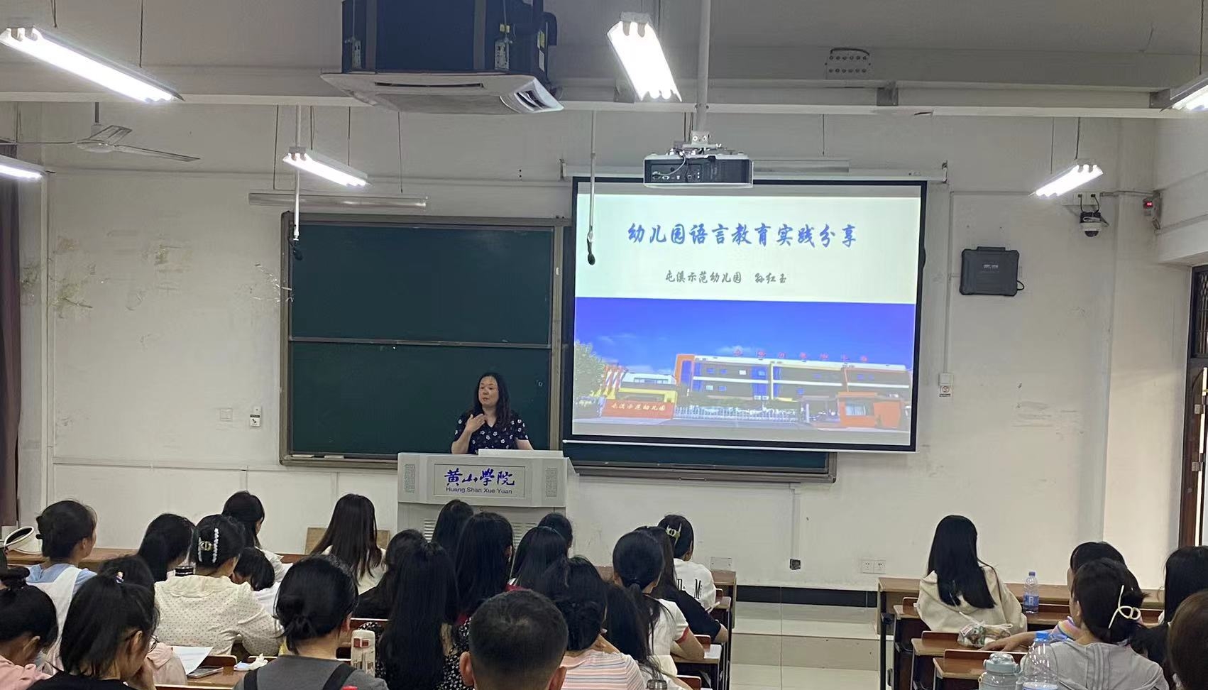 屯溪示范幼儿园教育集团总园长、安徽省特级教师、正高级教师曹美华为学前教育专业本科生做了题为《走进游戏,走进幼儿》的专题讲座。曹园长从自身的专业成长经历、屯溪示范幼儿园的特色游戏实践以及学前儿童游戏过程中常见的问题等方面内容进行了辅导,特别强调了要充分利用大自然中的低结构材料,结合不同年龄段幼儿的身心发展水平,还孩子游戏的一切可能。