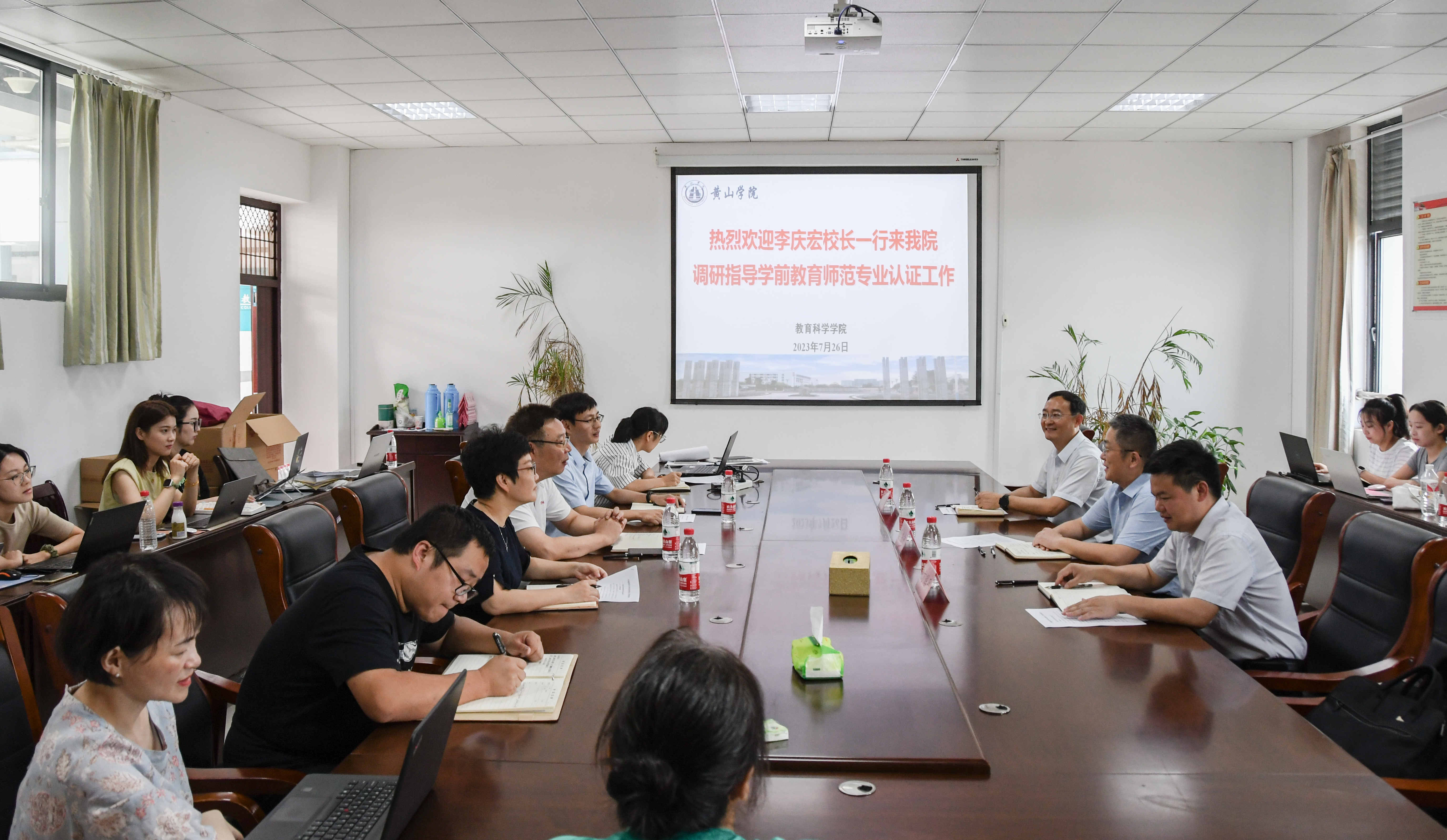 7月26日上午公司党委副书记、经理李庆宏在办公室、教务处等部门负责人的陪同下太阳成集团122ccvip调研指导学前师范专业认证工作。太阳成集团122ccvip领导班子成员、教研室主任、全体教师参加调研工作会议