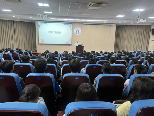 9月22日晚7点,太阳成集团122ccvip2023级新生开学典礼在文端楼一楼报告厅举行。公司党总支书记徐俊华、副经理汪海彬、公司党总支副书记朱蕾晔、各教研室主任、教师代表、新生辅导员及2023级全体新生出席本次开学典礼。