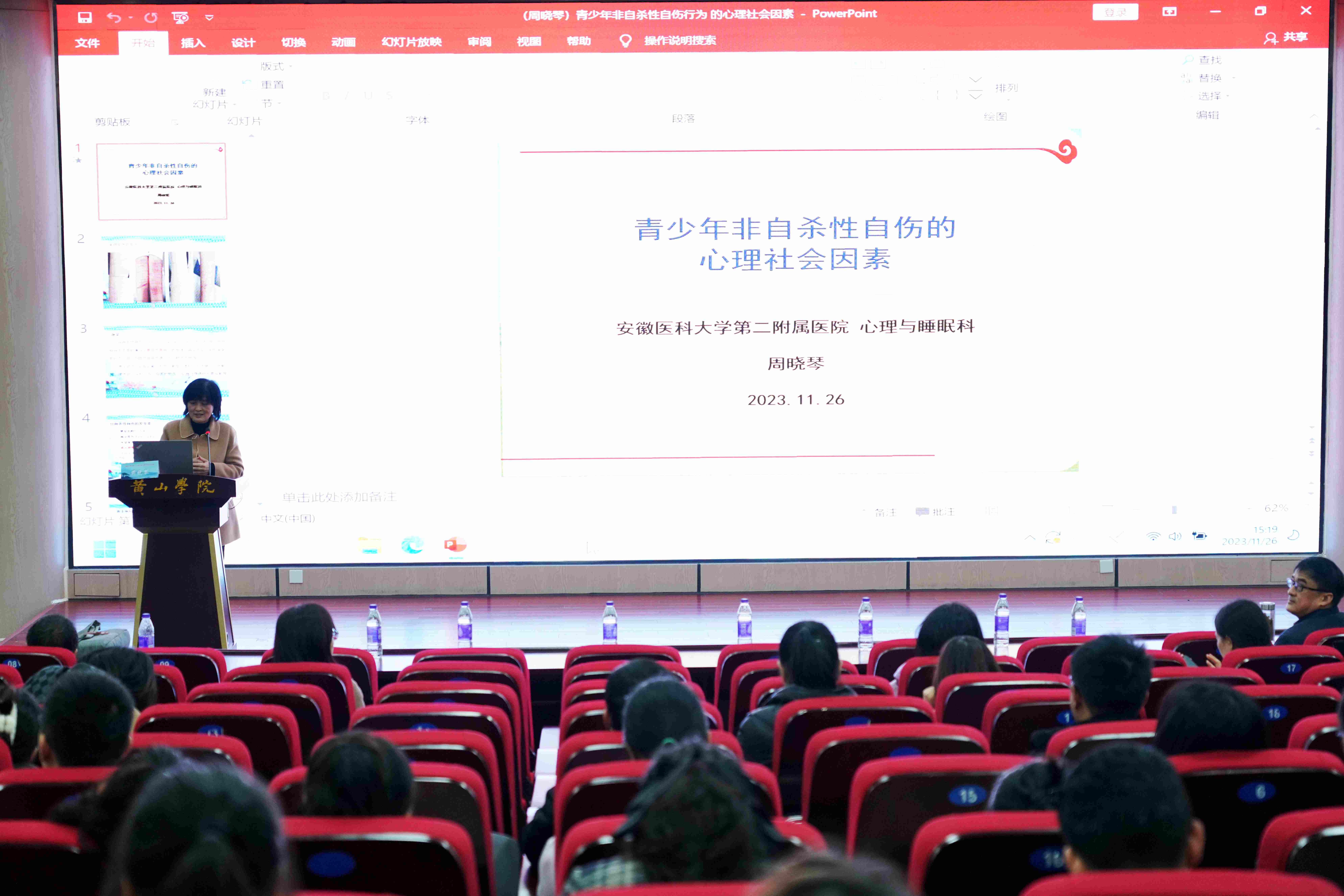 周晓琴主任在《青少年非自杀性自伤的心理社会因素》主题报告中指出青少年是人一生中发展最关键的时期,这一时期青少年的生理、心理迅速发展,然而当生理和心理发展不同步时,心理的不成熟往往容易导致各种冲突、矛盾。报告从生理、心理、社会等八个方面讲述了造成青少年非自杀性自伤的原因,并呼吁广大研究者对这一群体引起重视,通过评估和干预手段帮助他们改善心理健康水平。