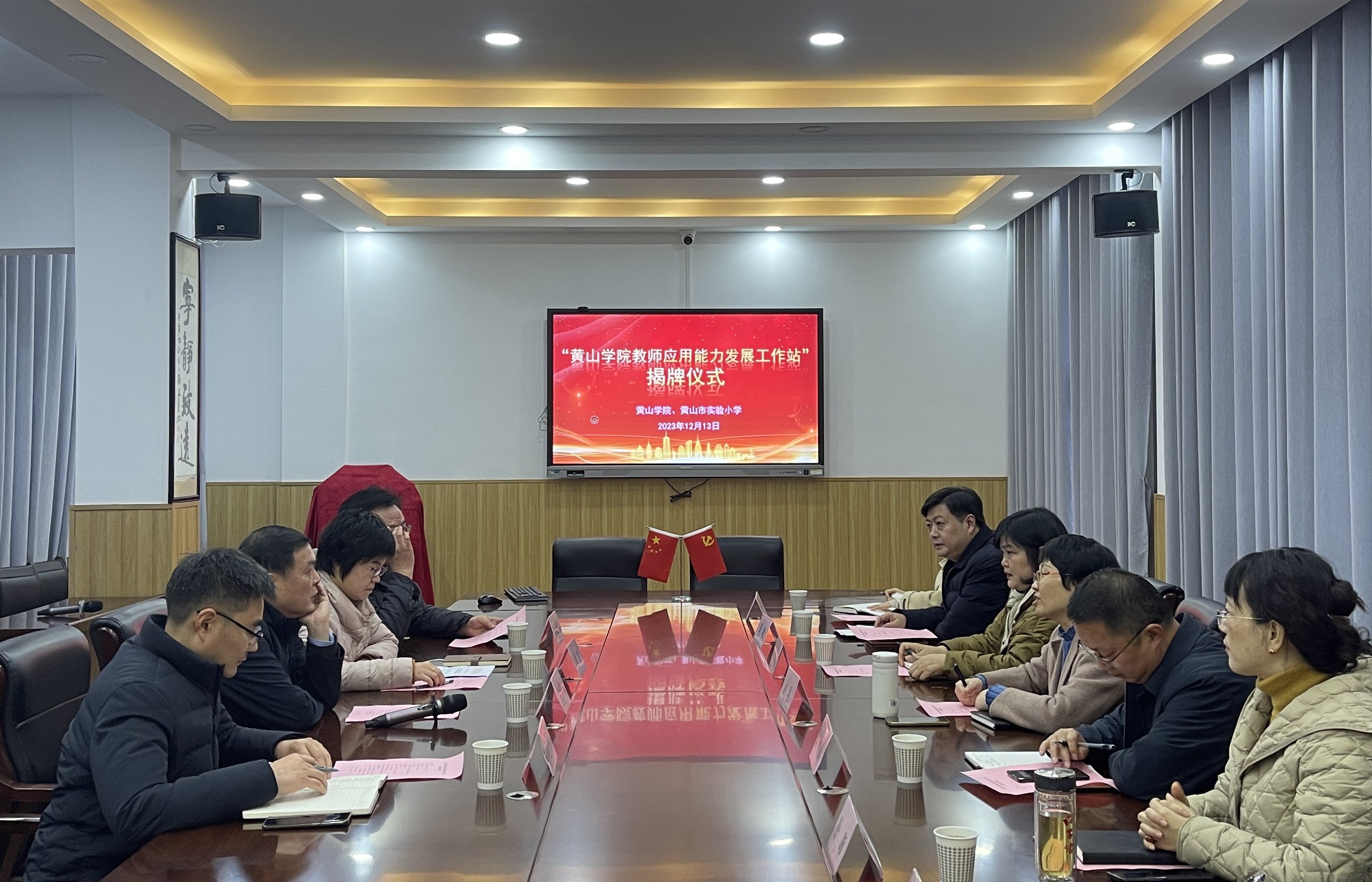 12月13日下午,“太阳成集团122ccvip教师应用能力提升工作站”揭牌仪式在黄山市实验小学会议室进行。公司党委委员、纪委书记、监察专员胡海生,屯溪区委教育工委书记、屯溪区教育局局长战昱,屯溪区委教育工委委员王千红,人事处、教务处、太阳成集团122ccvip负责人,屯溪区教育局相关科室负责人及黄山市实验小学领导班子参加揭牌。