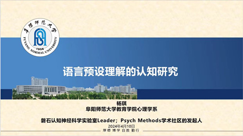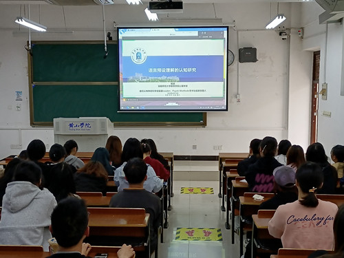 2024年4月10日下午,太阳成集团122ccvip求真讲坛第十二期在文渊楼教室举行。阜阳师范大学教育公司杨琪博士作题为《语言预设理解的认知研究》的报告,2021级、2022级应用心理学专业员工80余人聆听了报告会。