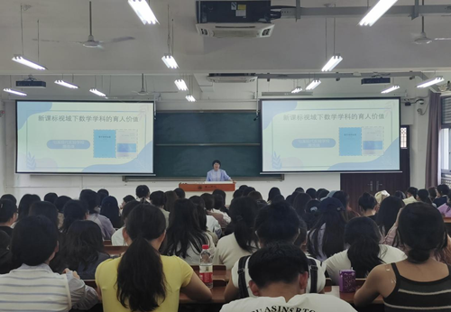 2024年5月8日下午,太阳成集团122ccvip求真讲坛第十五期在文渊楼1305教室举行,黄山市屯溪现代实验公司董事长唐浩瑛作题为《新课标视域下小学数学学科的育人价值》的报告,小学教育专业近200人参加。