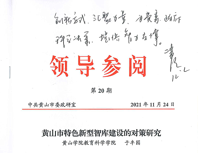 党员教师模范带头,不断深化专业内涵建设。2019年以来,学前教育专业确定为省一流专业建设点、省教学创新团队,应用心理学专业获批省示范实验实训中心、省基层示范教研室、省教学创新团队,小学教育专业纳入省第一批次本科招生。对标师范专业认证标准要求开展专业建设、课程建设和实训室建设,徐俊华教授主持的“基于师范专业认证的学前教育专业建设与改革研究”获得安徽省质量工程重大教研项目结项优秀。汪海彬博士获得安徽省第十三批学术和技术带头人后备人选。于丰园教授的“黄山市特色新型智库建设的对策研究”资政报告获得黄山市委书记凌云的批示——“创新方式、汇聚力量、为党委政府科学决策提供智力支持”。近年来,教师获批国家级课题3项,教育部课题2项,省杰出青年项目1项、省优秀科研创新团队1个、省级课题20余项,横向课题10项,到账经费近300万元。出版学术专著5部、发表高质量论文20余篇、申请专利10余项,获省级社会科学奖二等奖1项、市级社会科学奖2项,咨政报告获国家领导批示1份,市厅级领导批示3份。在高质量论文发表、纵向课题、到帐总经费、市级以上政府采纳报告、省级以上学会社科奖项、市级以上科研平台等方面较好地完成了公司科研任务。