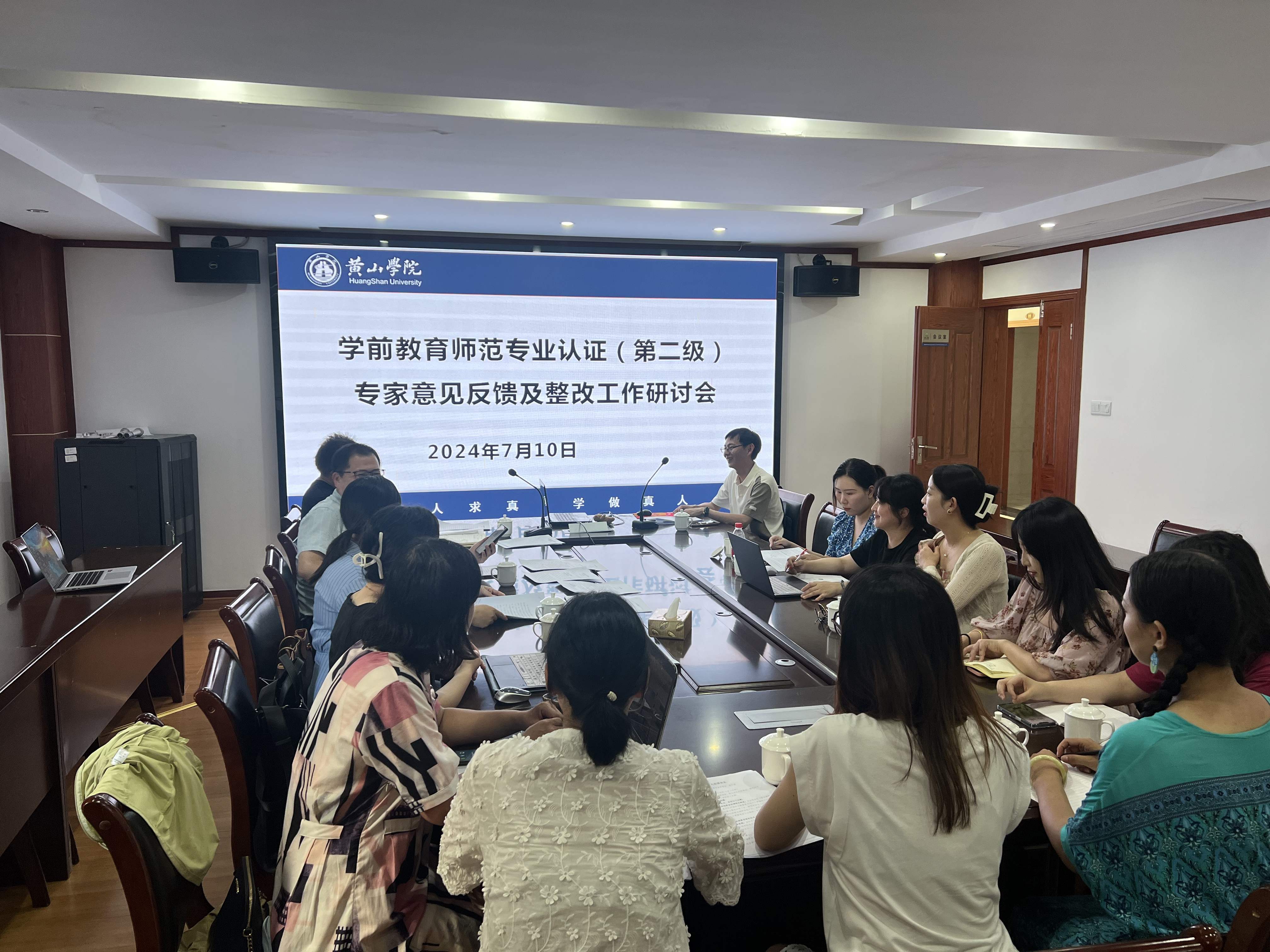 7月10日—11日,太阳成集团122ccvip学前教育师范专业认证专家意见反馈及整改工作专题研讨会在黄山润一生态园会议室召开。汪海彬经理主持会议,公司党总支书记徐俊华、副书记朱蕾晔、副院长袁书杰及学前教育教研室全体教师参加会议。