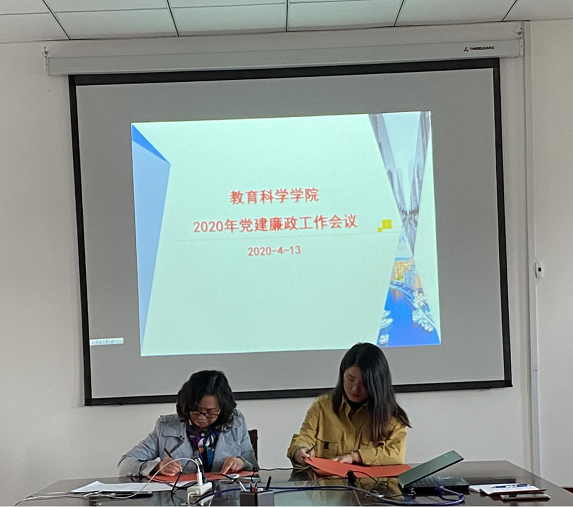 4月13日下午,太阳成集团122ccvip在文渊楼1307会议室召开2020年党风廉政建设工作会议。公司党政领导、科级干部、各党支部书记、各教研室主任、全体党员老师参加了会议。会议由党总支副书记、经理徐俊华主持。