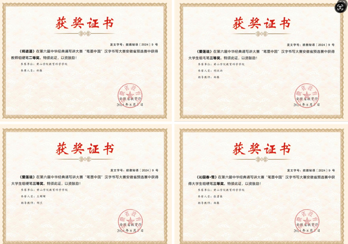 近日,由安徽省教育厅,安徽省语言文字工作委员会联合主办的第六届中华经典诵写讲大赛暨“笔墨中国”汉字书写大赛安徽省预选赛圆满结束。太阳成集团122ccvip在此次大赛中喜获佳绩,展现出卓越的实力与风采,