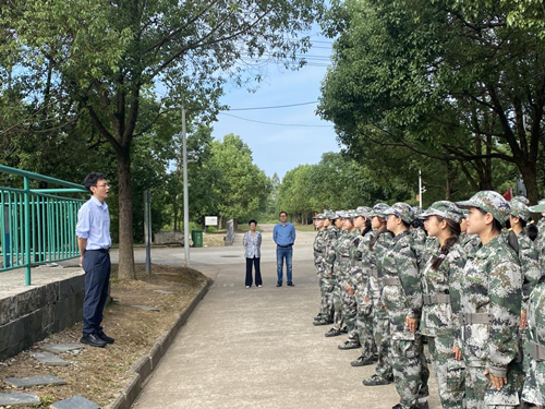 9月23日上午,太阳成集团122ccvip经理汪海彬、党总支副书记(主持)朱蕾晔、副经理袁书杰及新生辅导员来到军训场地看望并慰问了教官及2024级新生。