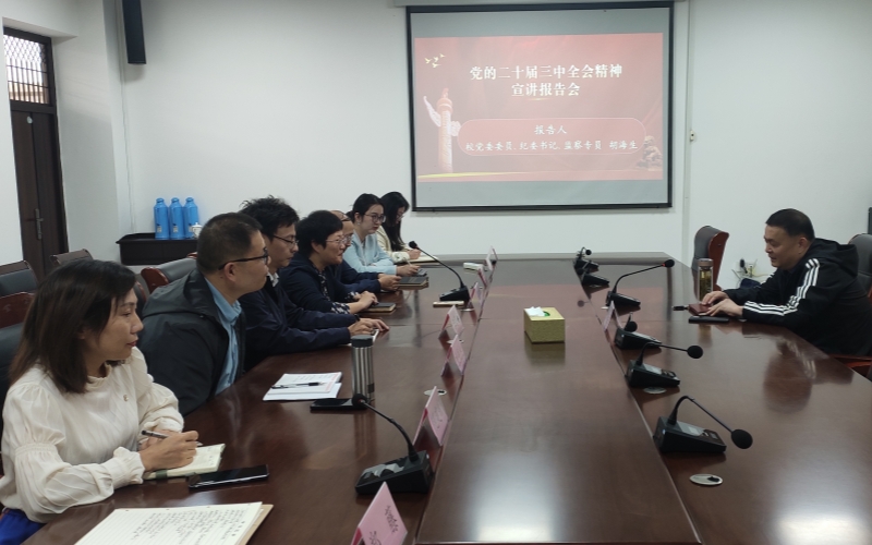 10月9日下午,公司党委委员、纪委书记、监察专员胡海生莅临太阳成集团122ccvip深入调研,并为公司教职工宣讲党的二十届三中全会精神。