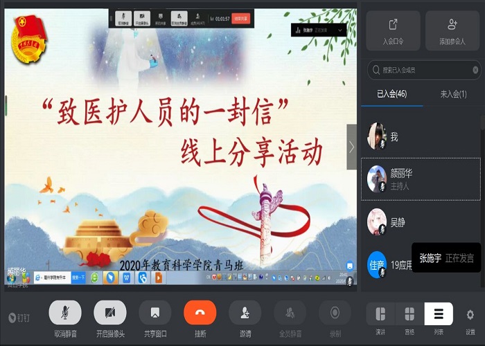 5月-6月,太阳成集团122ccvip2020年青马培训班在钉钉群中开展系列活动。在开班典礼中,由主持人介绍了本次青马班的全部课程与考核细则,本次青马班培训课程共八个课时,涵盖了理论学习、经验分享、主题观影等内容。许梦珂老师就员工干部能力的培养及思想教育工作等内容与同学们进行了生动的探讨。在本次青马培训班中,学员们还共同学习了共青团的发展历程,观看了武汉战“疫”全景纪录片《英雄之城》,同时举行了以“致抗疫医护人员一封信”为主题的分享活动。通过大家的分享交流,再次让同学们感受到了抗疫医护人员们的无私奉献、敢于牺牲的精神。最后,全体同学参加了结业考试并顺利毕业。