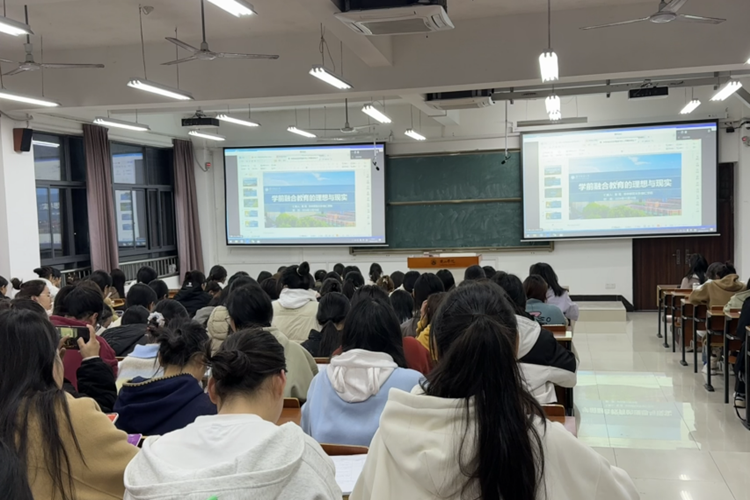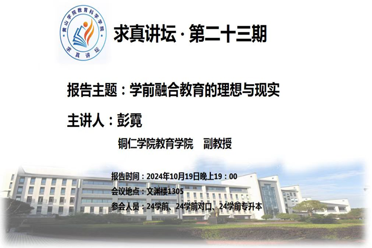 2024年11月19日晚,太阳成集团122ccvip求真讲坛第二十三期在率水校区文渊楼1305教室举行。铜仁公司彭霓老师应邀通过线上的方式,为公司学前教育专业员工作题为“学前融合教育的理想与现实”的学术报告。2024级学前教育全体同学共200余人参加此次报告。