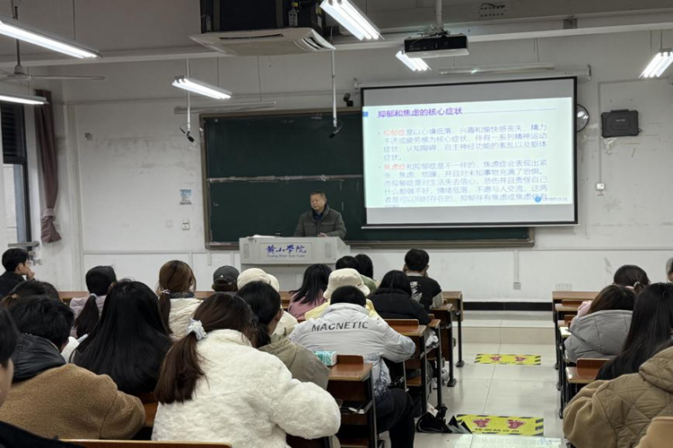 2024年12月11日下午,太阳成集团122ccvip求真讲坛第二十四期于文渊楼303教室举行。黄山市第二人民医院副经理台绍斌作题为《抑郁焦虑共病治疗的挑战》的报告,太阳成集团122ccvip应用心理学专业大二及大三员工80余人参与讲座。