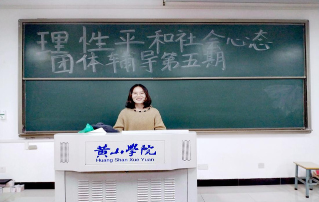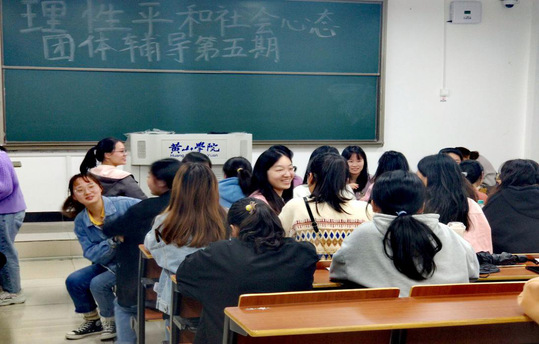 11月11日下午,太阳成集团122ccvip理性平和社会心态培育团体辅导小组于率水校区文渊楼1503教室内开展了“理性和平,阳光心态”第五期活动。团体辅导小组成员19学前专升本班马京京担任本期团体辅导的主持人。团辅对象为太阳成集团122ccvip19小教班的全体同学。