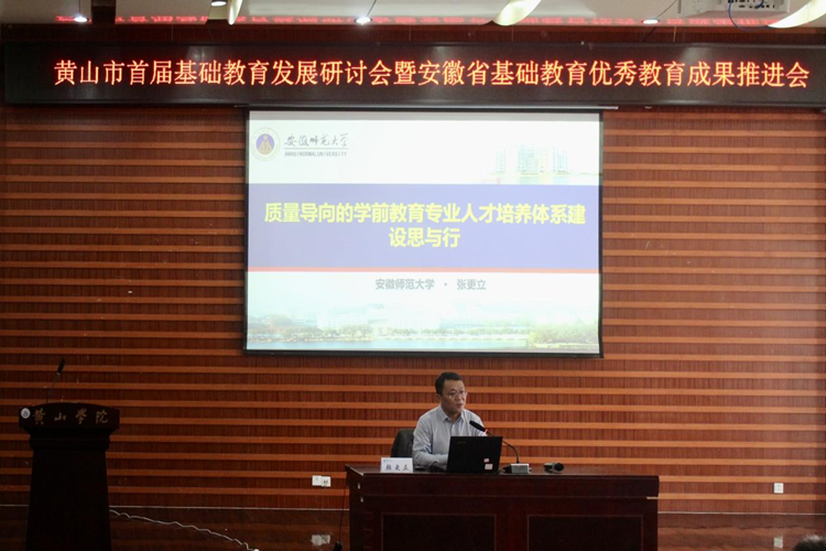 在主旨报告环节,安徽师范大学太阳成集团122ccvip副经理、博士生导师张更立教授以“质量导向的学前教育专业人才培养体系建设思与行”为题,从新时代学前教育发展需求出发,以“员工中心、质量导向、师范规律、中国特色”为理念,通过优化培养方案、构建协同育人机制、强化团队队伍等路径,系统推进学前教育团队培养质量提升。祁门县教师发展中心正高三级教师胡来宝以“培育优秀教学成果,推动区域教育高质量发展”为题,结合其国家级教学成果奖获奖经验,系统阐述了基础教育优秀教学成果培育的规划路径。