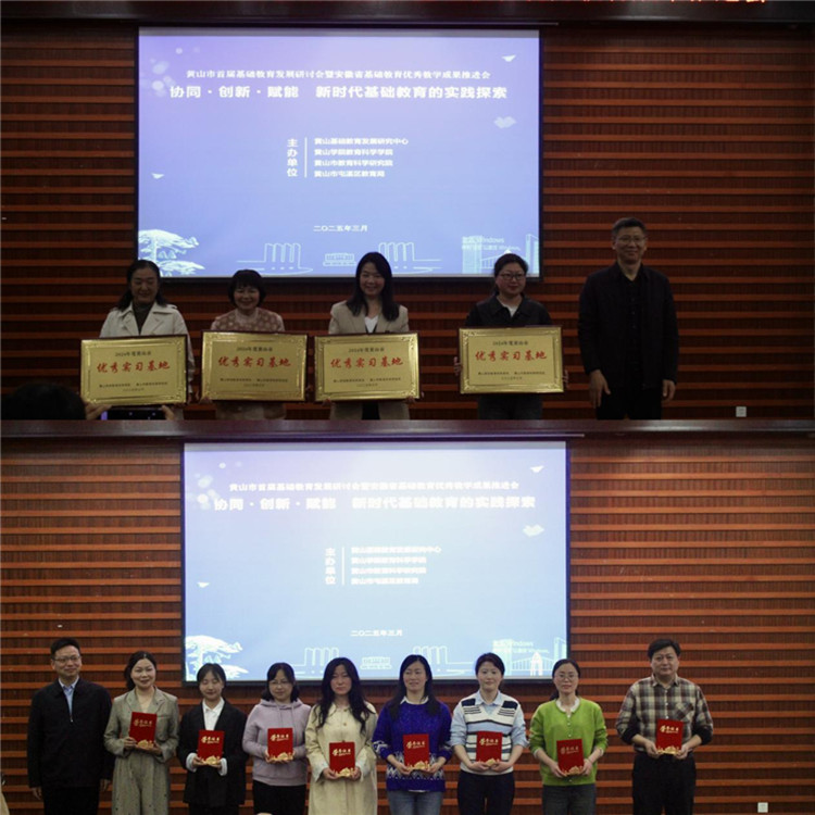 大会还对2024年度黄山市“优秀教育实习基地”及“优秀实习指导教师”进行了表彰。黄山市示范幼儿园等4家单位获评“优秀教育实习基地”,吴敏等8名教师被授予“优秀实习指导教师”称号。